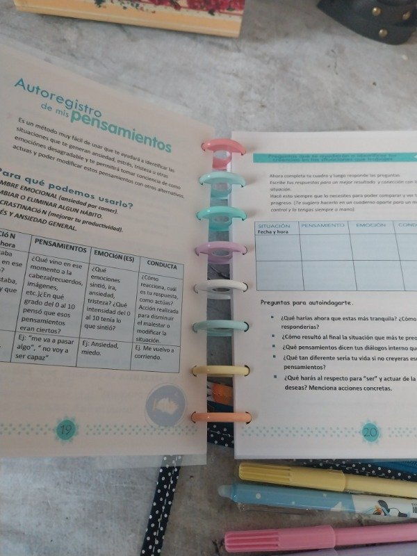 Este Combo tiene : libro con anillado discos inteligentes, tapa flexible el primer libro contiene : agenda para trabajar las emociones, dieta mental, diario de Gratitud, guia para trabajar la dependencia emocional y guia para mejorar la autoestima. El segundo, es un cuaderno de hojas rayado , anillado inteligente, con tapa con frase inspirada. Completa el combo: pouch con una lapicera y 3 marcadores pastel.