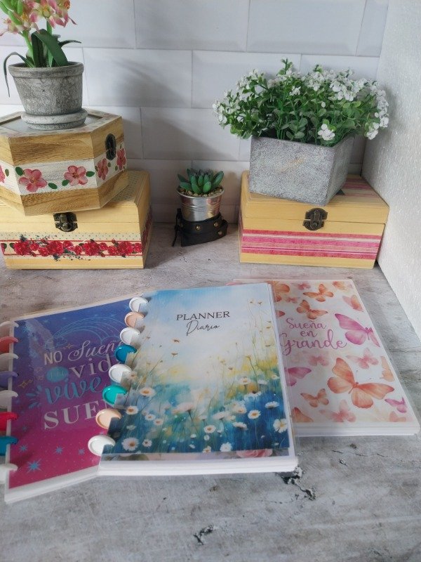 Cuaderno tapas flexibles con discos inteligentes. Hojas diseñadas con flores a todo color. Diselos diferentes.