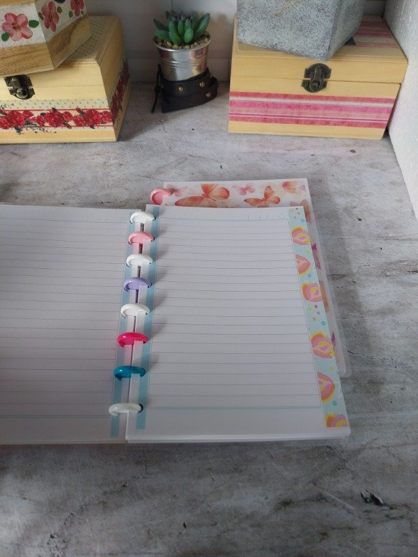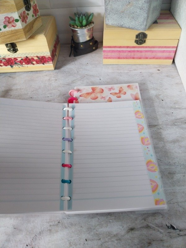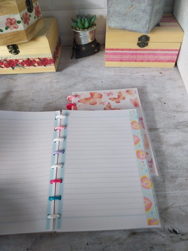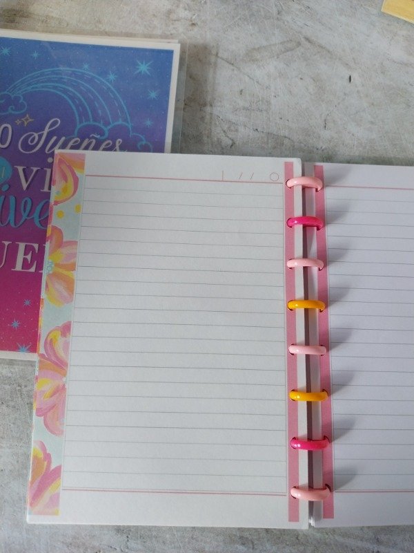 Cuaderno A5 con hojas rayadas , bprde con decoraciones a color