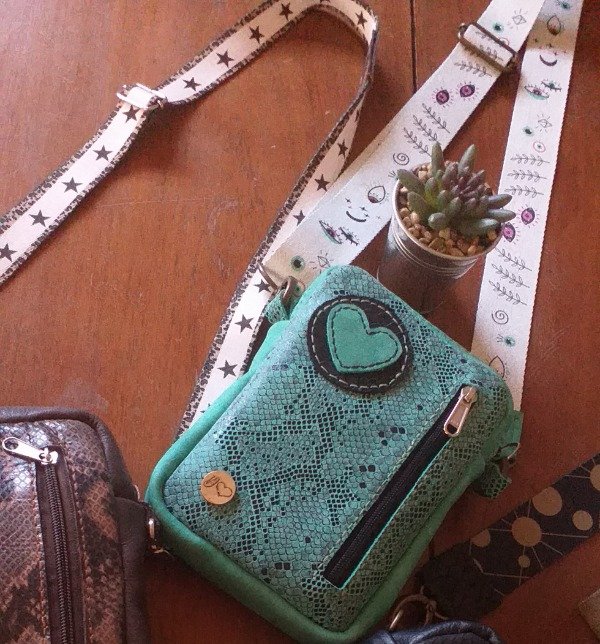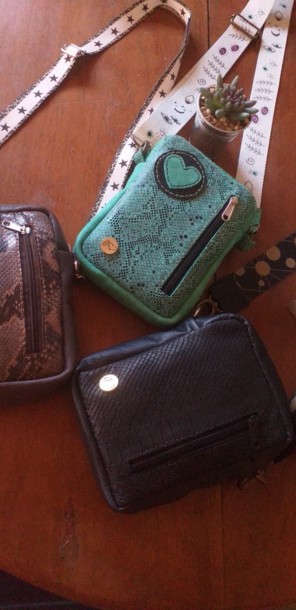 Minibag mediana, bolsillo con cierre delantero , bolsillo trasero con broche...cierre superior. .. también disponible en marron snake print