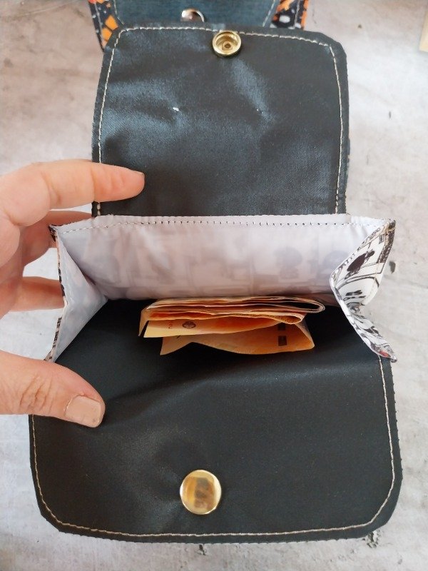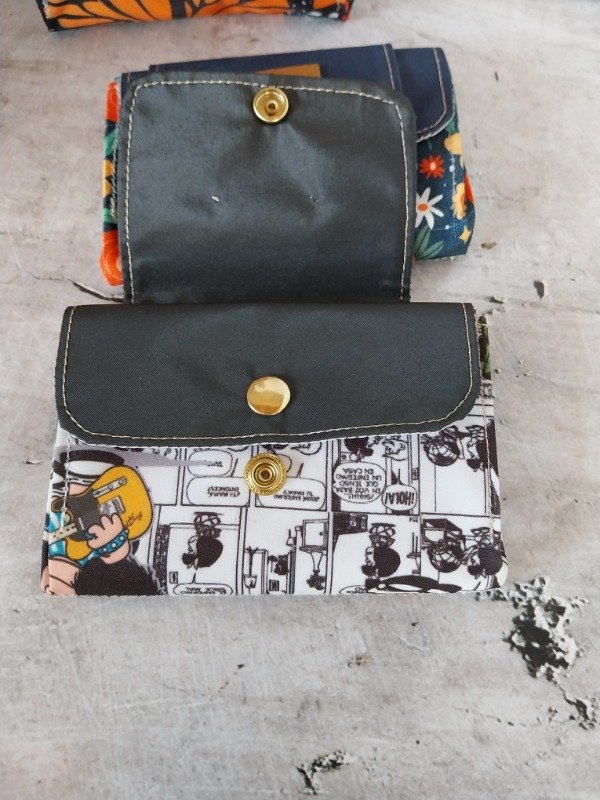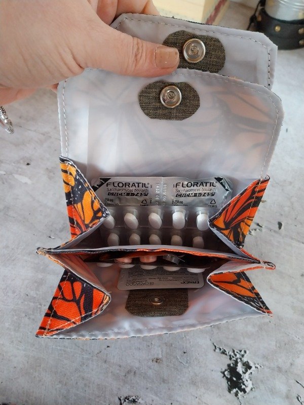 Tarjetero/ estuche con 3 compartimientos. Cierra con doble tapa y doble broche. Lugar para tarjetas o billetes. Tambien para guardar blister o lo que prefierss