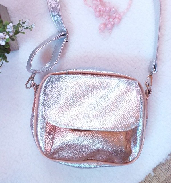Bandolera mediana... metalizada... bolsillo delantero... triple compartimiento. ..