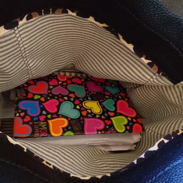 Correas dobles al hombro... bolsillo delantero con decorados... íntegramente forrada en Gross resinado...