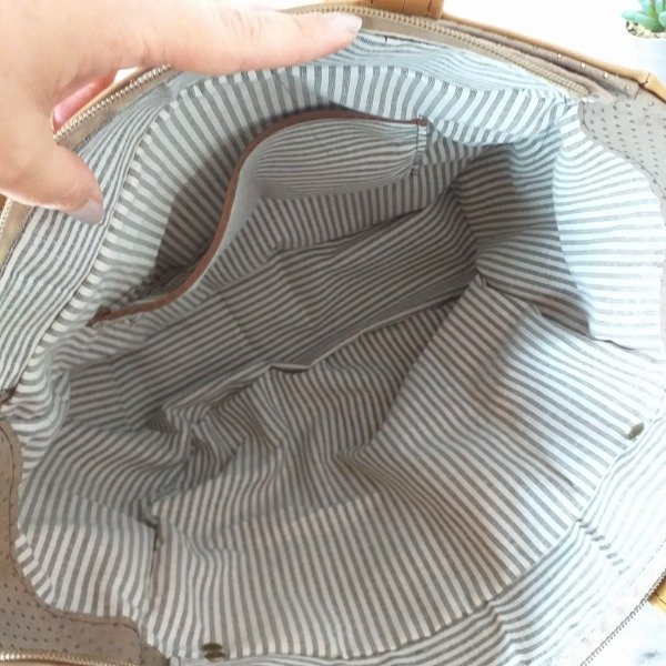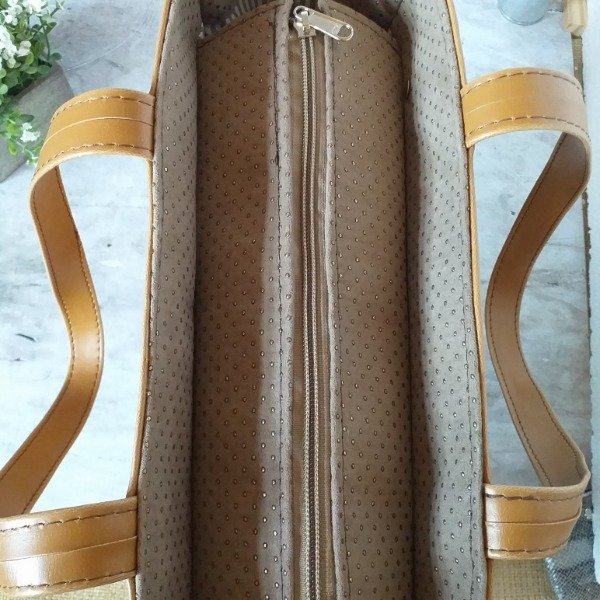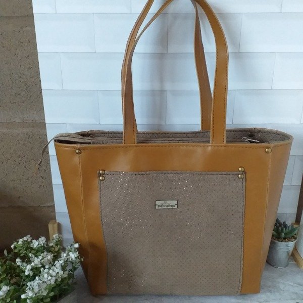 Bolso amplio con acceso con cierre superior....bolsillo delantero . Doble manija de hombro... bolsillo interno en forreria.... ancho 45cm.. alto 35 cm