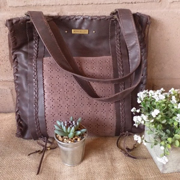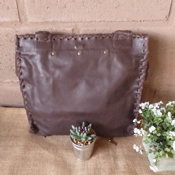 Cuero vacuno con bolsillo delantero plano... doble Correa al hombro..
