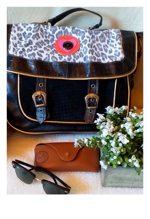 Cartera amplia, con tapa y bolsillo delantero...