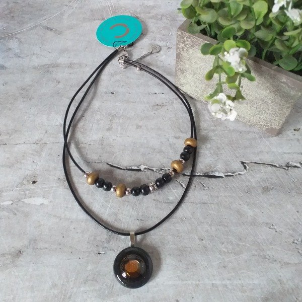 Collar doble vuelta con cuentas combinadas de cristal y diferentes materiales