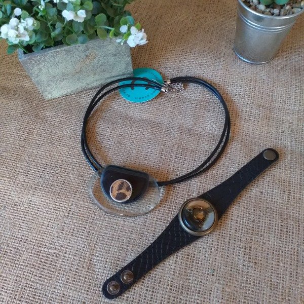 Importante pieza de vitrofusion transparente ovalada con centro en negro y print... podes combinarla con pulsera Paris al tono....
