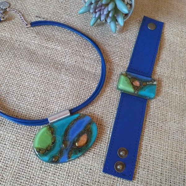 Collar ajustable, corto con importante pieza de vitrofusion ovalada....podes conjuntar con pulsera de 3cm.o de 2cm