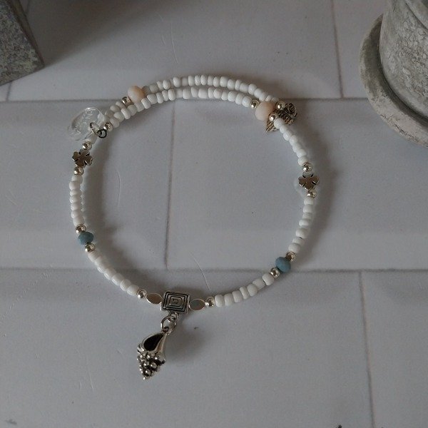 Gargantilla inteligente ( alambre con memoria) dije central caracol. Cristales blancos