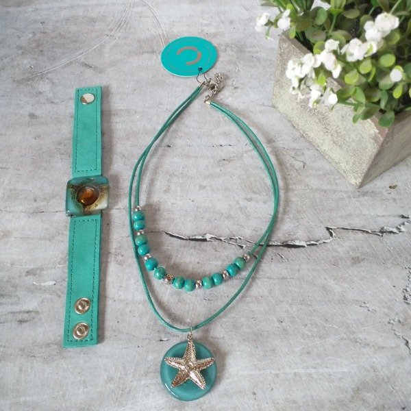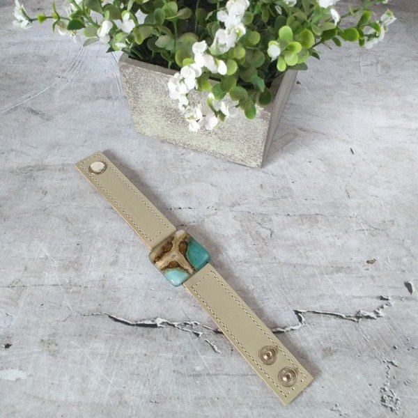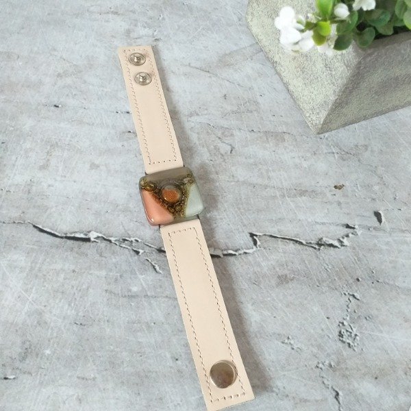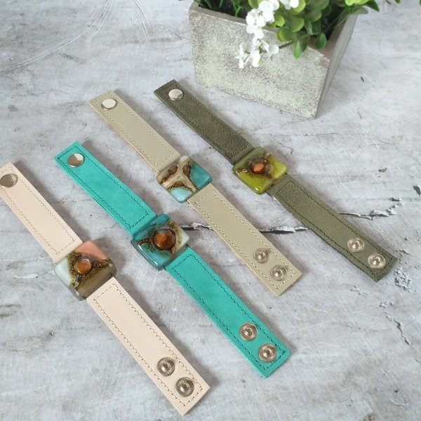 Pulsera cuero vacuno con pieza vitrofusion formato cuadrado...