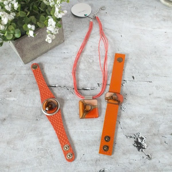 Pulsera cuero vacuno... pieza vitrofusion 2cm