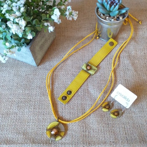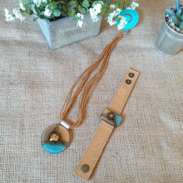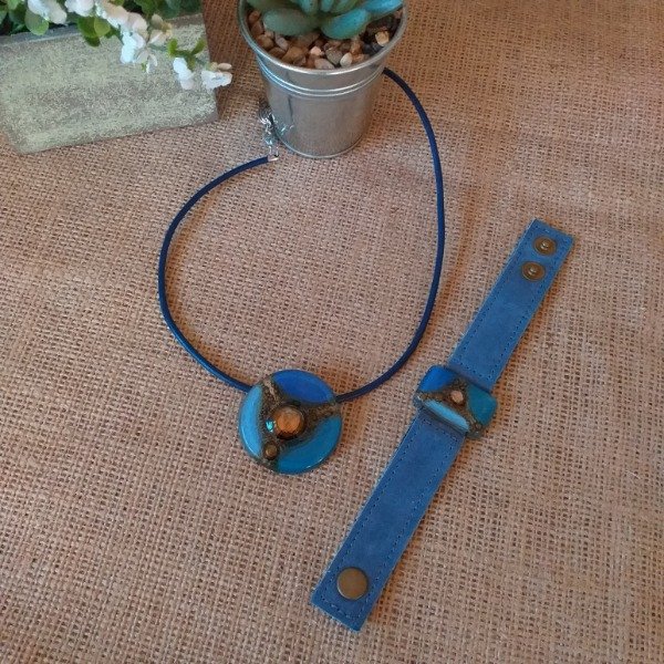 Pulsera en cuero vacuno con pieza de vitrofusion de 2cm ....varios colores disponibles