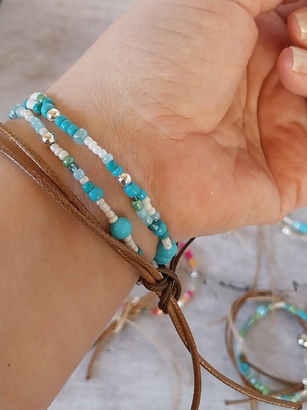 Pulseras combinadas, tanza acero con canutillos y mostacillas que dan varias vueltas, ( 2 o 3 segun tamaño de tu muñeca) diferentes combinaciones de colores)