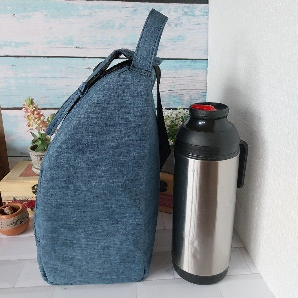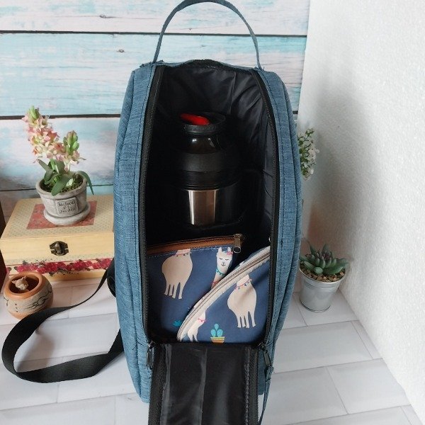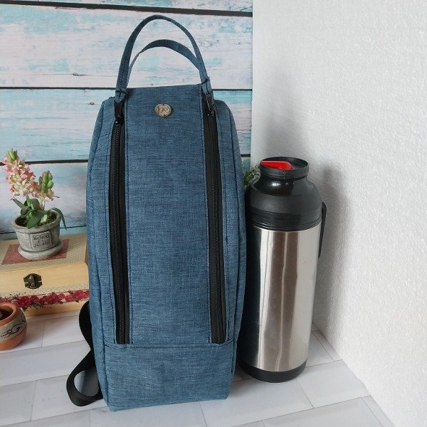 Portatermo para termos grandes. Bolsillo lateral ( entra celular). Separador de termo. Sector bombilla . Correa de mano . Correa larga tipo mochila- ajustable. Doble cierre frontal. MODELO SOLO A PEDIDO